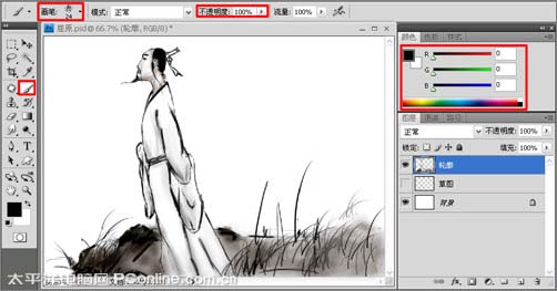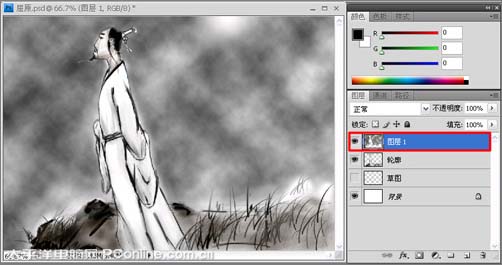 photoshop 鼠绘简单的水墨风格画--屈原