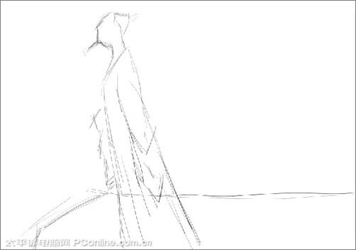 <图2> #p# 3、利用画笔在绘图中勾勒出画面的大概轮廓,如图3所示。