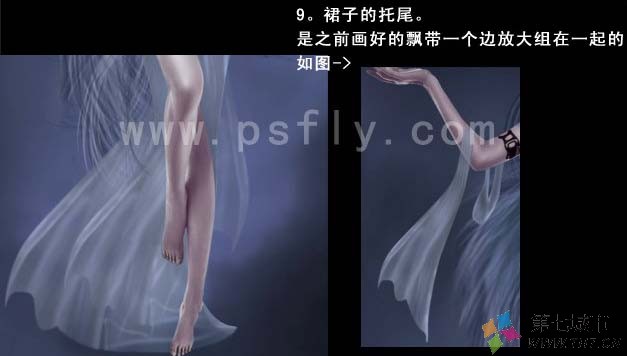 10、裙子的拖尾。是之前画好的飘带一个边放大 组在一起的效果。
