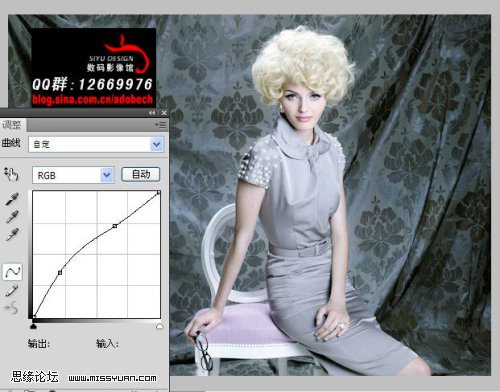 3、创建曲线调整图层,参数设置如下图,确定后打上装饰文字,完成最终效果。