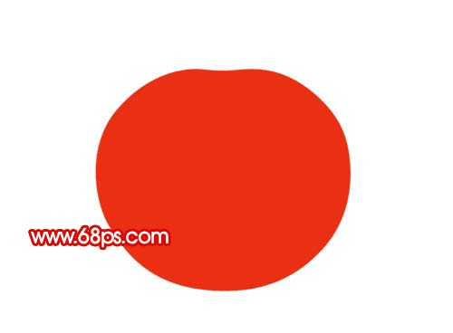 1、新建一个650 * 500像素的文件,背景为白色,然后新建一个图层命名为“主体”,用钢笔工具勾出番茄的轮廓路径,转为选区如图1,然后填充红色:#EA2F12,取消选区后效果如图2。