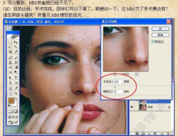 photoshop 快速消除人物脸部雀斑并还原皮肤质感
