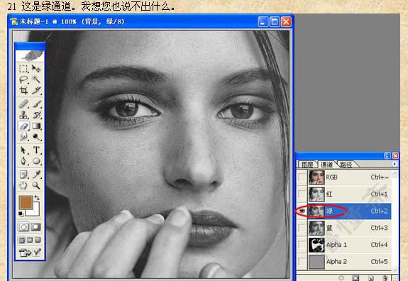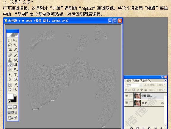 11、打开通道面板,得到“Alpha2”通道,将这个通道用编辑菜单中的复制命令复制到剪切板。