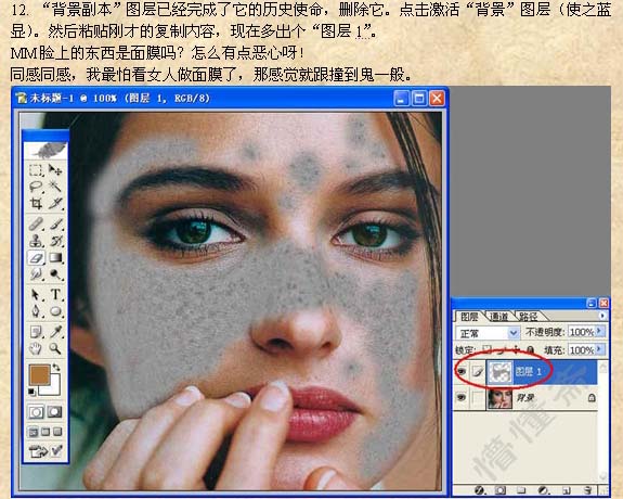 8、可以看到,人物脸部的雀斑不见了。