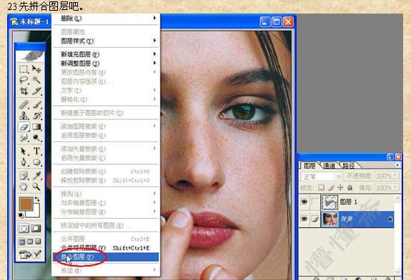 23、回到图层面板,合并所有图层。