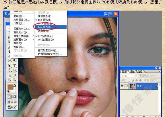 #p# 25、选择菜单:图像 > 模式 > Lab颜色。