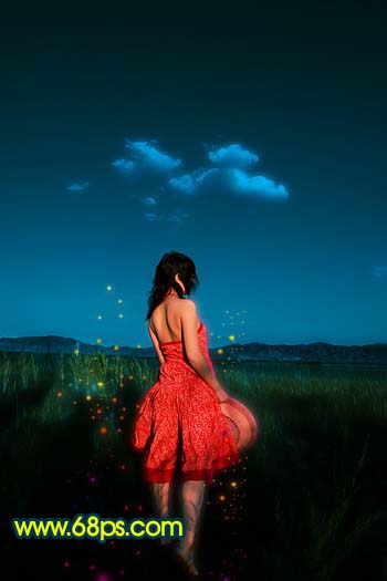 11、新建一个图层,给人物周围装饰一些彩色小点,如图22。