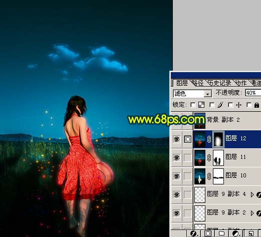 12、新建一个图层,盖印图层,把图层混合模式改为“滤色”,图层不透明度改为:40%,加上图层蒙版用黑色画笔把边角部分擦掉,如图23。确定后整体修饰下细节,完成最终效果。