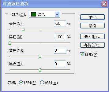 2、创建可选颜色调整图层,对黄色及绿色进行调整,参数设置如下图。这一步主要是调整树叶部分颜色。