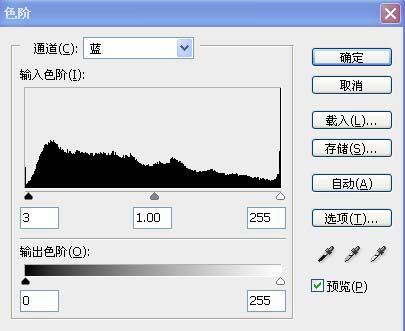 1、打开原图素材,创建色阶调整图层,对各通道进行调整,参数设置如下图。