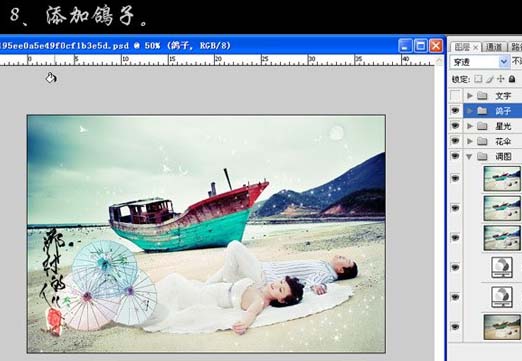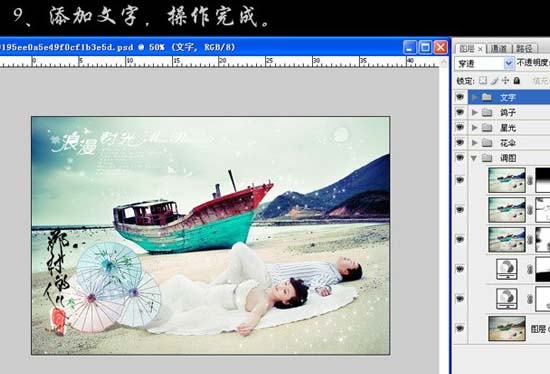 Photoshop 清晰浪漫的海景婚片