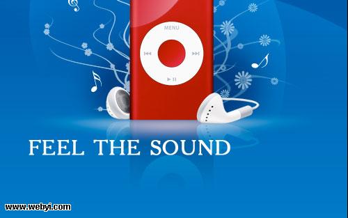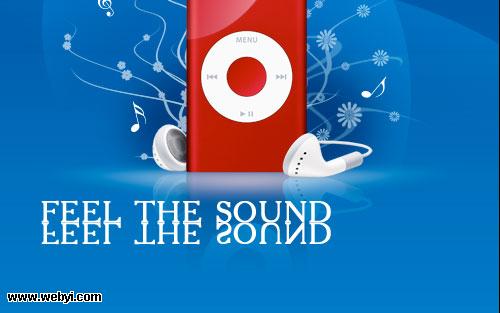 25、为完成这个海报我们还需要添加一些文字。转到 横排文字工具 (就是普通的那个) 然后写些文字像‘FEEL THE SOUND’ 使用白色。
