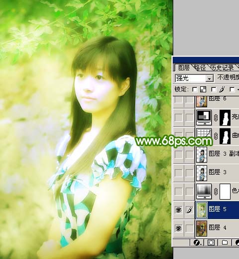3、新建一个图层,按Ctrl + Alt + Shift + E盖印图层,执行:滤镜 > 模糊 > 高斯模糊,数值为5,确定后把图层混合模式改为“强光”,效果如图3。