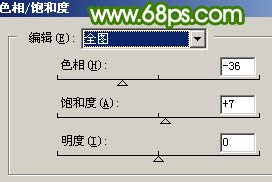 4、创建色相/饱和度调整图层,参数设置如图4,效果如图5。