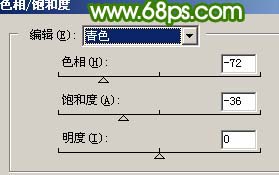 11、创建色相/饱和度调整图层,对青色进行调整,参数设置如图17,效果如图18。