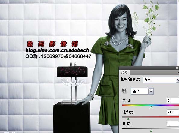 3、选择菜单:图层 > 新建调整图层 > 色相饱和度,参数设置如下图。