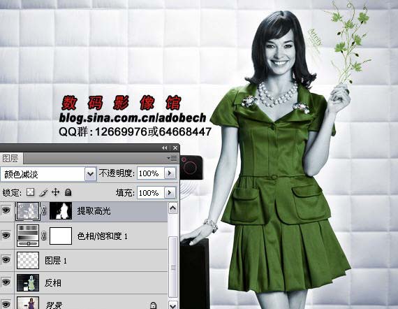 4、按Ctrl + Alt + ~ 提取高光,新建一个图层填充灰色,图层混合模式改为“颜色减淡”,加上图层蒙版用黑色画笔擦掉人物以外的部分。