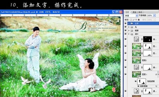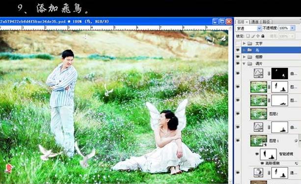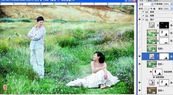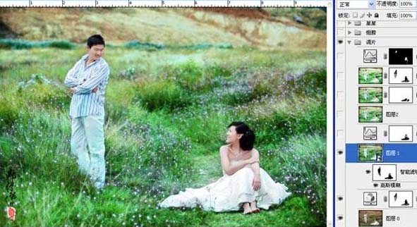 photoshop 打造梦幻的绿色外景婚片