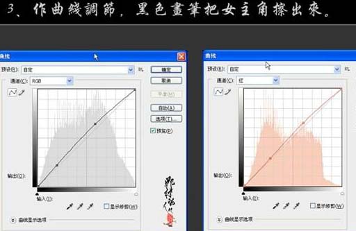 #p# 3、创建曲线调整图层,参数设置如下图,确定后用黑色画笔把女主角部分擦出来。