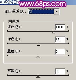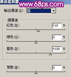 12、创建通道混合器调整图层,参数设置如图19,20,效果如图21。