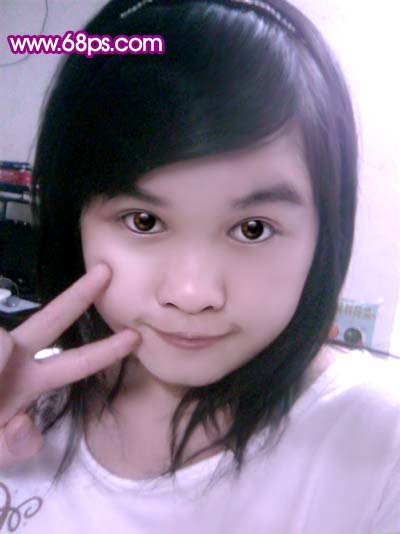 photoshop 把模糊的人物照片转成可爱的淡紫色手绘效果
