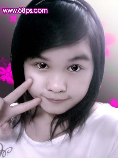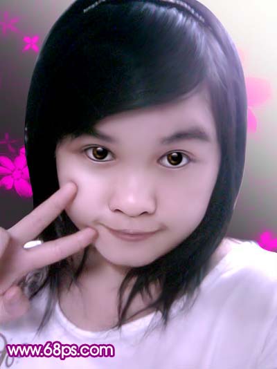 photoshop 把模糊的人物照片转成可爱的淡紫色手绘效果