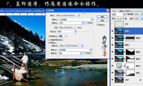 7、新建一个图层,盖印图层,执行:图像 > 应用图像操作。参数设置如下图。