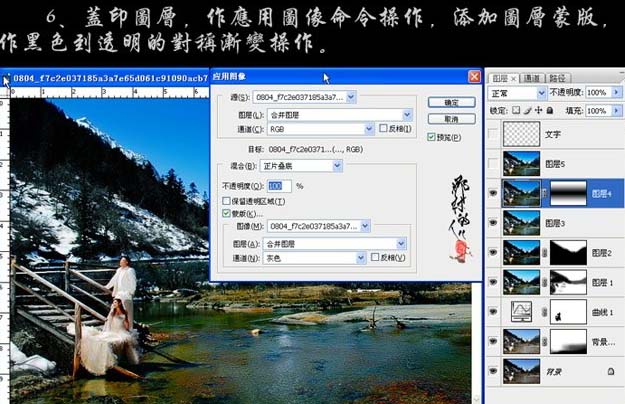 6、新建一个图层,盖印图层,执行:图像 > 应用图像操作。确定后加上图层蒙版用黑色到透明度的对称渐变操作,效果如下图。