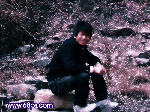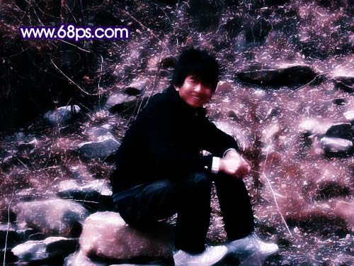 原图素材背景部分比较杂乱,色调也比较单一。处理的时候先用调色工具把颜色调浓一点,尽量把色彩对比拉大。然后再用滤镜特殊处理做成漂亮的背景。