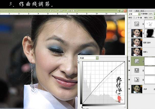 3、创建曲线调整图层,稍微把人物调亮一点。