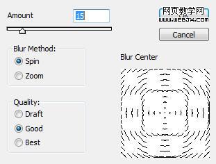 复制城市照片的图层,然后径向模糊滤镜,设置如下:
