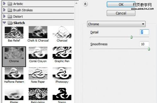 复制扣取出来的人物图层,执行滤镜>>艺术>>铬黄命令,设置如下: