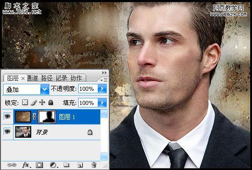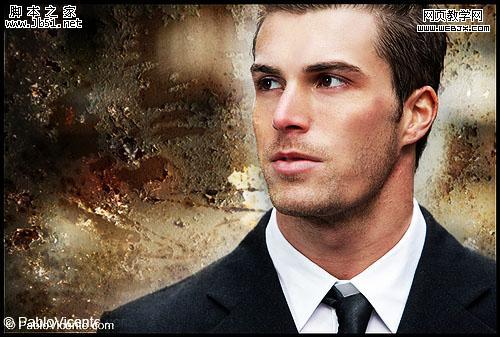 Photoshop 男士照片添加破损背景纹理