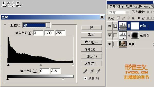 2、新建色阶调整图层,在各个通道中做如下调整。