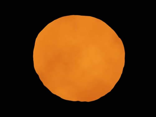 先来创造基本形状,以黑色为背景,创建一个新层,取名“橙子”。在上面画出一个不规则边缘、粗糙的圆来,填为白色,您可以用椭圆选框工具,或是套索工具来完成它。这里不规则的外形让它显得更自然些。