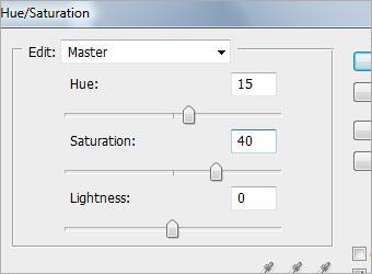 | 2、将手素材托拽到背景层上,选择 图像 >> 调整 >> 色相/饱和度,属性设置如下。 |