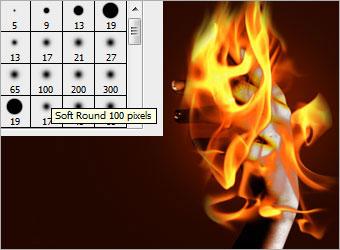 | 8、使用橡皮擦工具将多余部分的火焰擦除,得到如下效果。提示:可以使用减淡工具将火焰边沿进行修饰,使其更真实更自然。 |