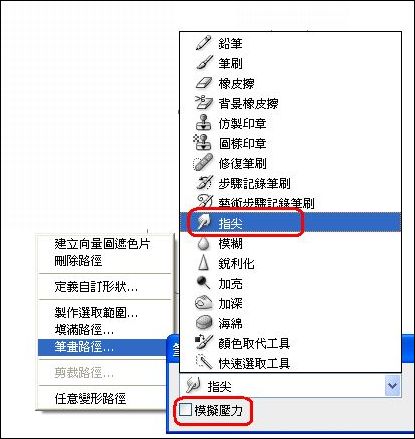 然后 右键 选择指尖(涂抹)