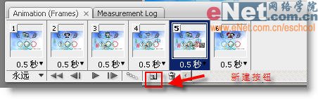 十二、准备工作结束了,现在窗口菜单把动画面板调出来,点新建按钮,新建5帧[图12];