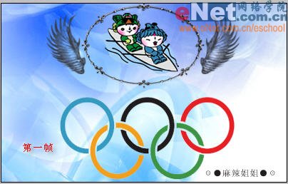 十三、第一帧只显示赛艇福娃、边框、五环及背景[图13];