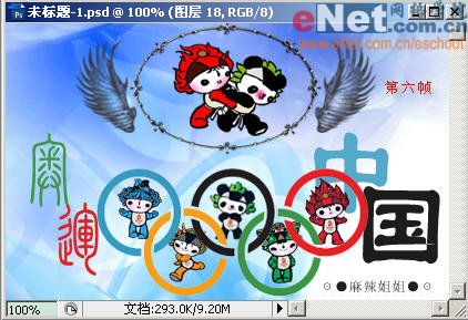 十八、第六帧现代五项换成柔道,及全部文字及五福娃图层[图18],所有帧显示时间均设成0.5秒[图182];
