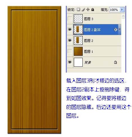 4、载入图层3描边的选区,在图层2副本上按删除键,得到如图效果。记得要将图层3隐藏,后边还要用。