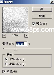 2、按Ctrl点文字,调出文字选区,新建一个图层,执行菜单:滤镜 > 渲染 > 云彩,不要取消选区确定后执行菜单:滤镜 > 杂色 > 添加杂色,参数设置如图2。