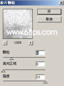 3、执行菜单:滤镜 > 艺术效果 > 胶片颗粒,参数设置如图3。