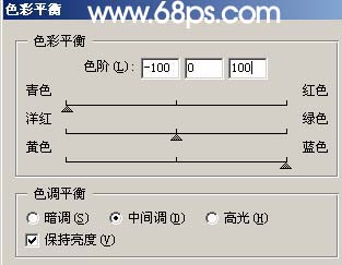 6、按Ctrl B调色彩平衡,参数设置如图8。