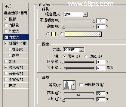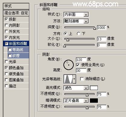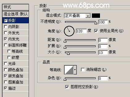 5、双击图层调出图层样式,参数设置如图10-13,效果如图14。