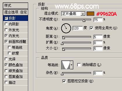3、双击图层调出图层样式,参数设置如图4-7,效果如图8。