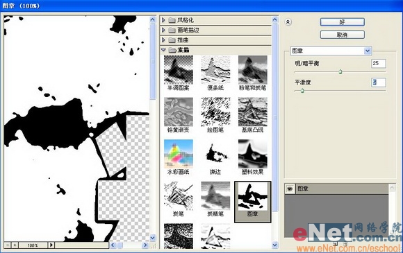 9、执行菜单栏中的“滤镜”“素描”“图章”命令,并在弹出的对话框中设置各项参数,如图12所示,图像效果如图13所示。
