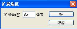 4、按住Ctrl键的同时单击文字图层,将文字载入选区。执行菜单栏中的“选择”“修改”“扩展”命令,在弹出的对话框中设置扩展量为35像素,如图04所示,图像效果如图05所示。