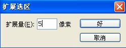 10、按住Ctrl键的同时单击文字图层,将文字载入选区。隐藏文字层,执行菜单栏中的“选择”“修改”“扩展”命令,在弹出的对话框中设置扩展量为5像素,如图17所示,图像效果如图18所示。